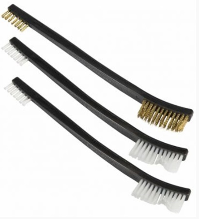 Jedna z kefiek je bronzová a dva sú nylonové. Jedna strana kefiek obsahuje malé štetiny pre čistenie úzkych priestorov. Druhá strana je určená na čistenie velkých predmetov.